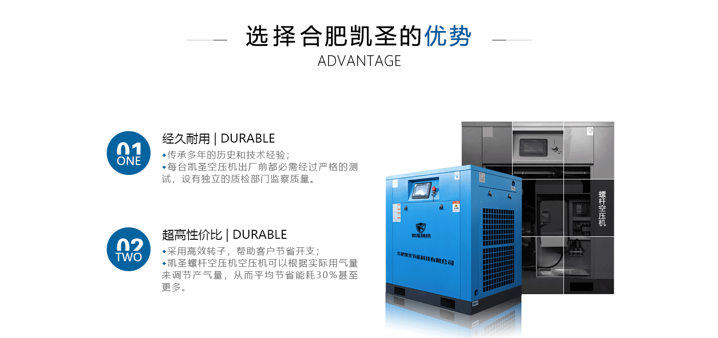 合肥凱圣節(jié)能科技有限公司是從事永磁變頻螺桿壓縮機系統(tǒng)的設計、制造、安裝、調(diào)試、維修與一體的公司。 在多年的螺桿空壓機研發(fā)與推廣歷程里,凱圣聚集和培養(yǎng)了大量壓縮機技術(shù)設計和管理人員,迅速發(fā)展成為集研究、生產(chǎn)、銷售、服務等環(huán)節(jié)為一體、嚴格按照標準執(zhí)行的企業(yè),公司成立開始,即以滿足客戶的實際需求為己任,大力開拓國內(nèi)外節(jié)能型空壓機市場,并始終保持創(chuàng)新精神,全力研發(fā)更為節(jié)能的螺桿式空壓機,努力站在空壓機節(jié)能領域的排頭位置。 應用范圍:公司產(chǎn)品廣泛應用于機械、輕工、紡織、食品、石油、化工、冶金、礦山、電力、城建、醫(yī)學研究和科研等各行業(yè)中,將為節(jié)約能源做出巨大貢獻。公司秉承“信譽至上,...